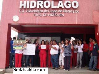 Diferentes consejos comunales del Municipio Lagunillas protestaron ayer en las oficinas de Hidrolago por la escasez de agua en el sector.